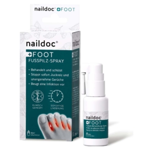 naildoc® FOOT sprej za atletsko stopalo pomaže u liječenju i sprječavanju atletskog stopala. To je medicinski proizvod s prirodnim aktivnim sastojcima, koji uklanjaju gljivične infekcije. Sprej stvara zaštitni sloj na koži stopala. Kombinacija sastojaka prodire u gornji sloj kože i stvara okruženje, u kojem se gljivice ne mogu razmnožavati. Sprej se dobro upija u kožu, aktivni sastojci ostaju u njoj i osiguravaju dugotrajno djelovanje na pravom mjestu.
